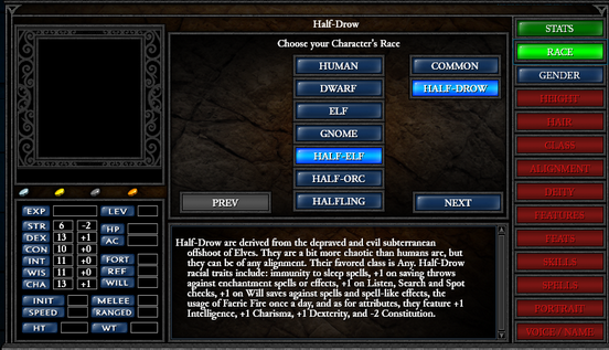 The Temple of Elemental Evil (Temple+) - Half-Drow Subrace Mod ![]() ![]() ![]() ![]() Description: It's a subrace of the Half-Elf race. I did it mainly for roleplay. This can also be used as a minimum sample example of how to add a custom subrace into the game. Game version: tested on 1.0.95 (other versions need to be modified) |